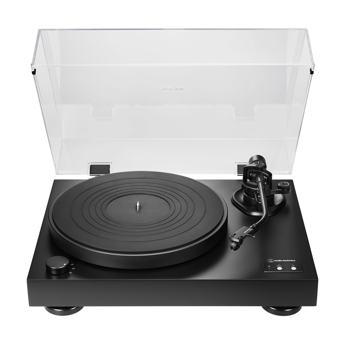 De AT-LP8X speelt platen af op 33-1/3, 45 en 78 toeren. Het 25 mm dikke, resonantie-werende draaiplateau van gegoten aluminium is met rubber gedempt en wordt geleverd met een rubberen mat van 2,5 mm. Het draaiplateau wordt aangedreven door een sensor gestuurde motor die garandeert dat continu een precieze draaisnelheid wordt aangehouden. De motor en de efficiënte interne schakelende voeding zijn ondergebracht in een plint van dik MDF (Medium Density Fibreboard), met in hoogte verstelbare voetjes voor een nog betere bescherming tegen ongewenste geluiden en trillingen.